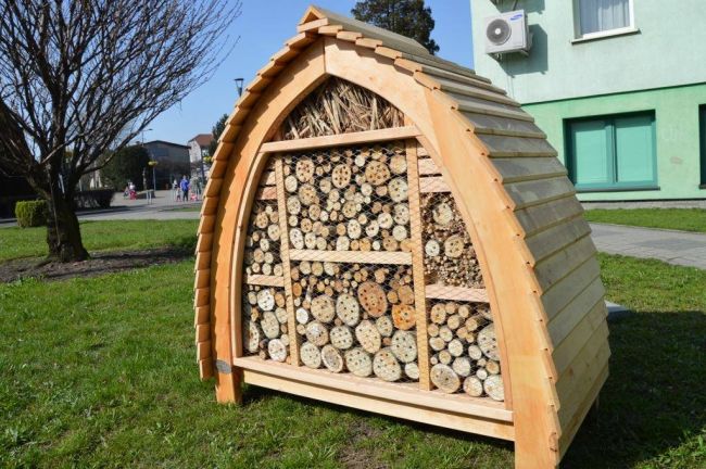 Duży hotel dla dzikich zapylaczy. Radlin 2016. Źródło: materiały udostępnione przez pana Marka Gajdę.