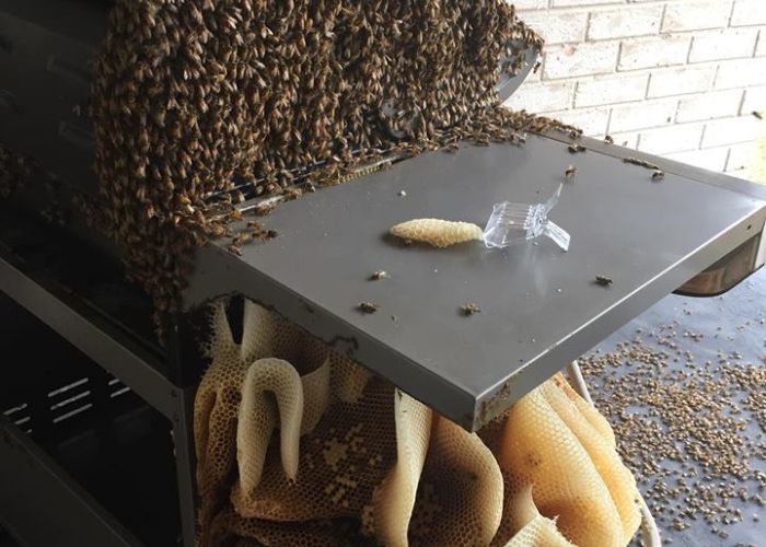 W jednej z posiadłości w Claremont Meadows w zachodniej części Sydney, na nieużywanym od około 8 miesięcy grillu, okoliczne pszczoły stworzyły sobie niesamowicie wyglądający dom. Właściciele poprosili doświadczonego pszczelarza Carla Skinnera o usunięcie gniazda z ich posesji, a ten podzielił się niesamowitymi zdjęciami na swoim portalu internetowym.