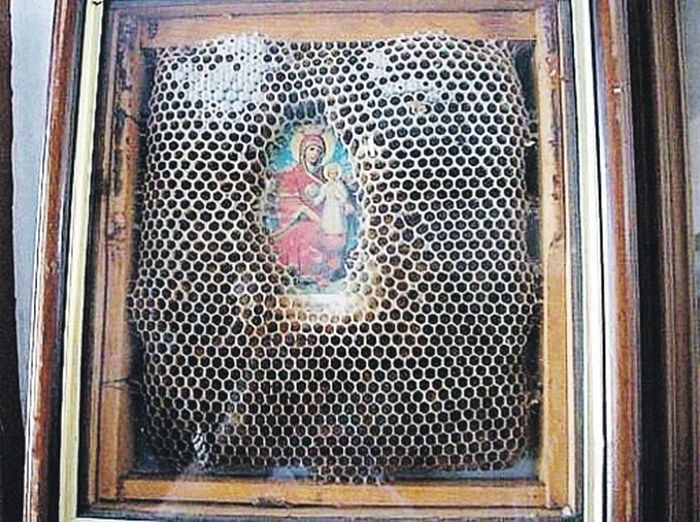 Na jednym z prawosławnych forów internetowych opublikowano wyjątkowe zdjęcie przedstawiające ikonę z klasztoru mnichów z Athos. Ikona przedstawia Matkę boską, ale została ona pokryta pszczelim woskiem. Obraz nazwano "cudem w plastrze miodu".