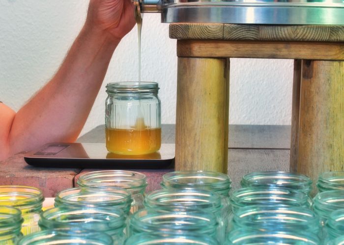 Napełnianie słoika miodem