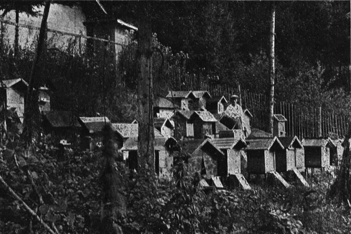 Pasiek podkarpacka Z. Kamana, składająca się z 25 pni w ulach amerykańskich w Słobodzie dubieńskiej koło Doliny. Źródło: Bartnik postępowy Rok 52, nr 11, str. 263