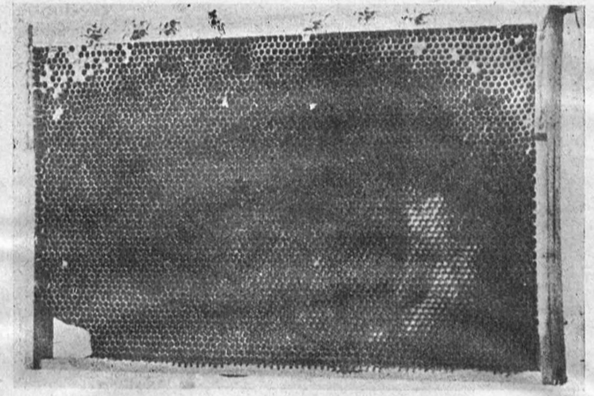 Postanowiono więc 6 z tych rodzin poddać dokładniejszym badaniom. Uskuteczniono to w ten sposób, że w sam środek zaczewionego gniazda wstawiono cały plaster ramki Dadant'a literalnie stoczony przez am. gn.