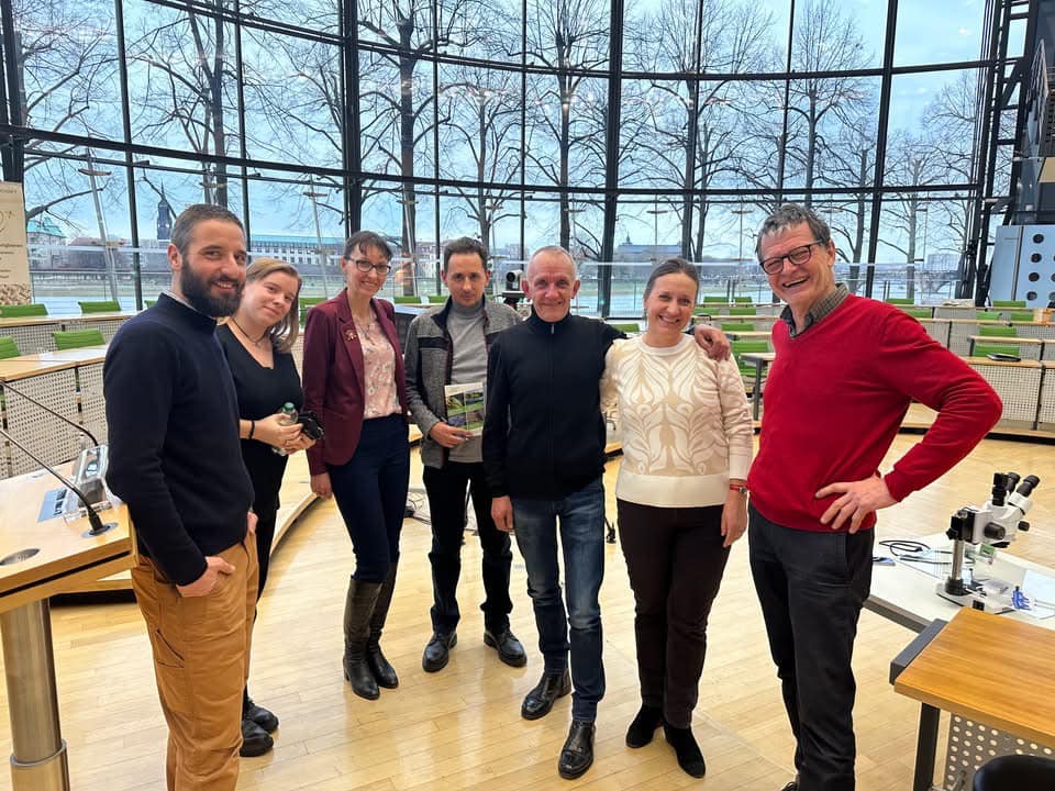 W grudniu 2023 na nasze zaproszenie spotkaliśmy się w Łodzi z grupą naukowców z Polski. Byli to prof. Aneta Strachecka, dr Anna Gajda, dr Patrycja Staniszewska, prof. Krzysztof Olszewski i właśnie Thomas van Pelt. Thomas wygłosił (w naszym domku letnim) wykład na temat metod biotechnicznych, taki jak w Varroaresistenz 2033. Dalej były nasze rozmowy i mój pomysł, że ruch VR-2033 Polska powstanie w Polsce. W styczniu pojechaliśmy do niemieckiego Landestagu w Dreźnie na Konferencję Arbeitstagung-Varroaresistenz. Uczestniczyła wymieniona grupa z wyłączeniem Anny Gajdy, która z przyczyn osobistych zrezygnowała. To było niesamowicie interesujące dla nas wydarzenie. Z jednej strony nasza zwarta grupa z Polski, a z drugiej piękna i duża sala wypełniona grupą ludzi z branży pszczelarskiej z Niemiec i kilku krajów Europy. Nie spodziewaliśmy się tak miłej i ciepłej relacji i przyjęcia nas jako gości szczególnych. Tym bardziej, że wśród gospodarzy był minister rolnictwa, wielu znanych naukowców z Europy, prezydent Drezna i wielu prezydentów dużych organizacji związkowych, zarówno amatorów jak i zawodowców. Byli także szefowie dużych organizacji hodowców wszystkich ras pszczół.