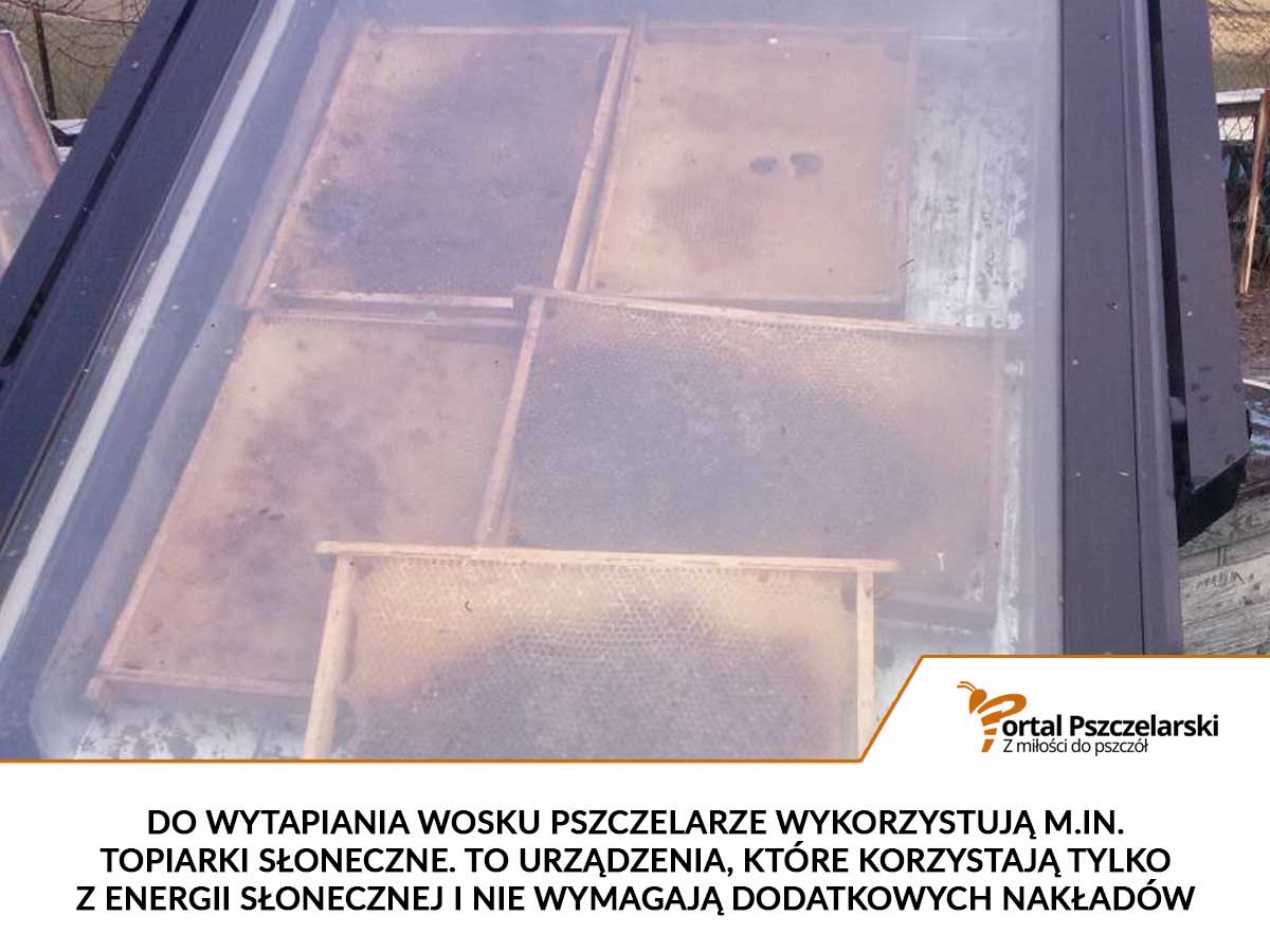 Do wytapiania wosku pszczelarze wykorzystują m.in. topiarki słoneczne. To urządzenia, które korzystają tylko z energii słonecznej i nie wymagają dodatkowych nakładów.