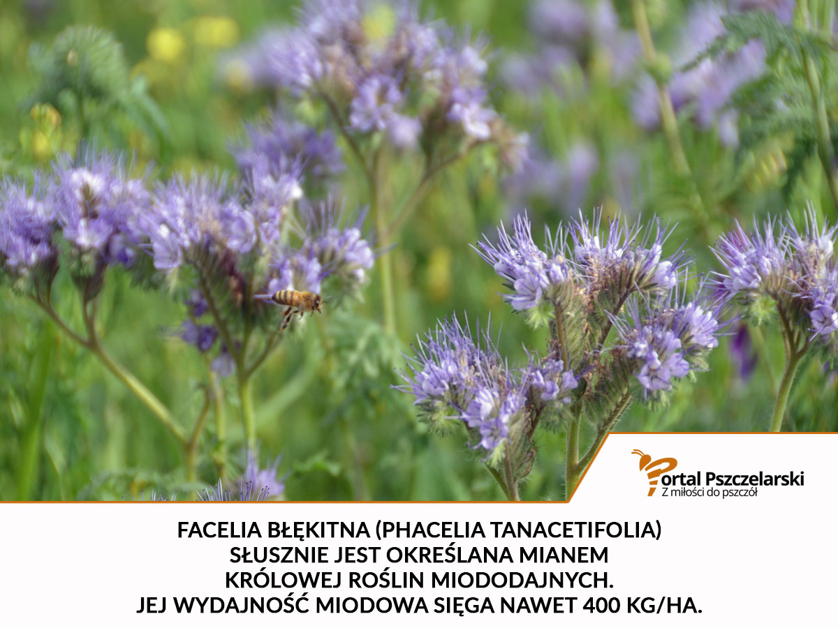 Facelia błękitna (Phacelia tanacetifolia) słusznie jest określana mianem królowej roślin miododajnych. Jej wydajność miodowa sięga nawet 400 kg/ha.