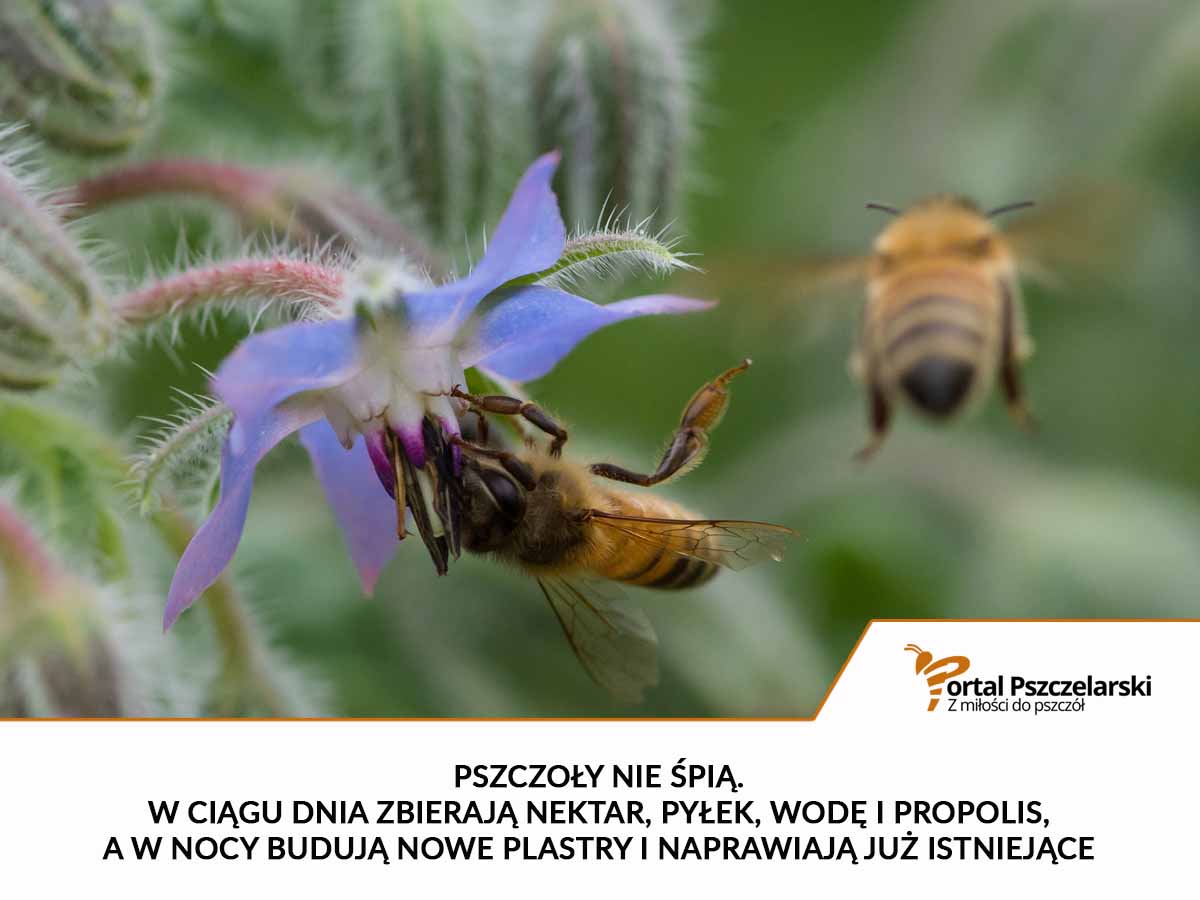 W nocy i podczas niekorzystnych warunków pogodowych wszystkie pszczoły znajdują się w ulu.