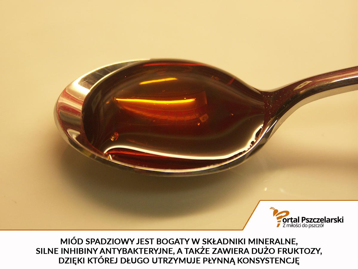Miód spadziowy bogaty jest w składniki mineralne, silne inhibiny antybakteryjne, a także zawiera dużo fruktozy, dzięki której długo utrzymuje płynną konsystencję.