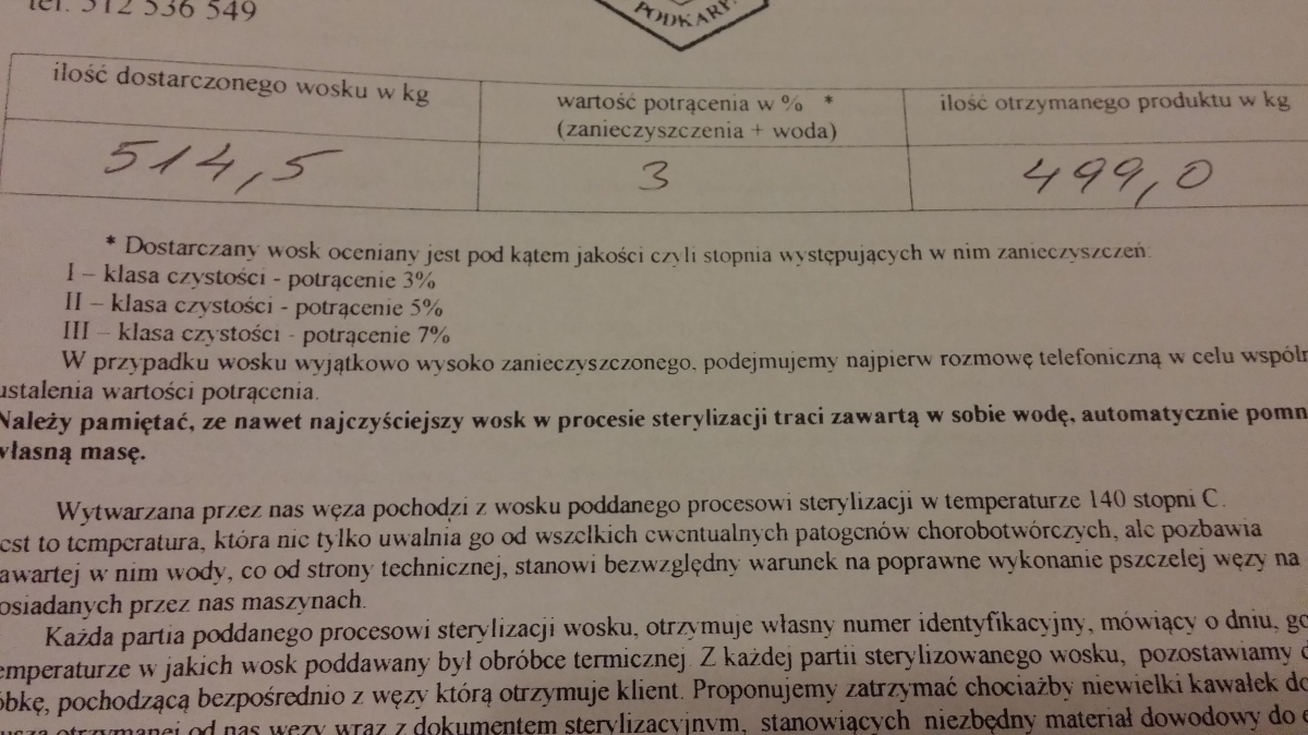 17 Lipca 2018 Inne Usługa przerobu i produkacja węzy pszczelej