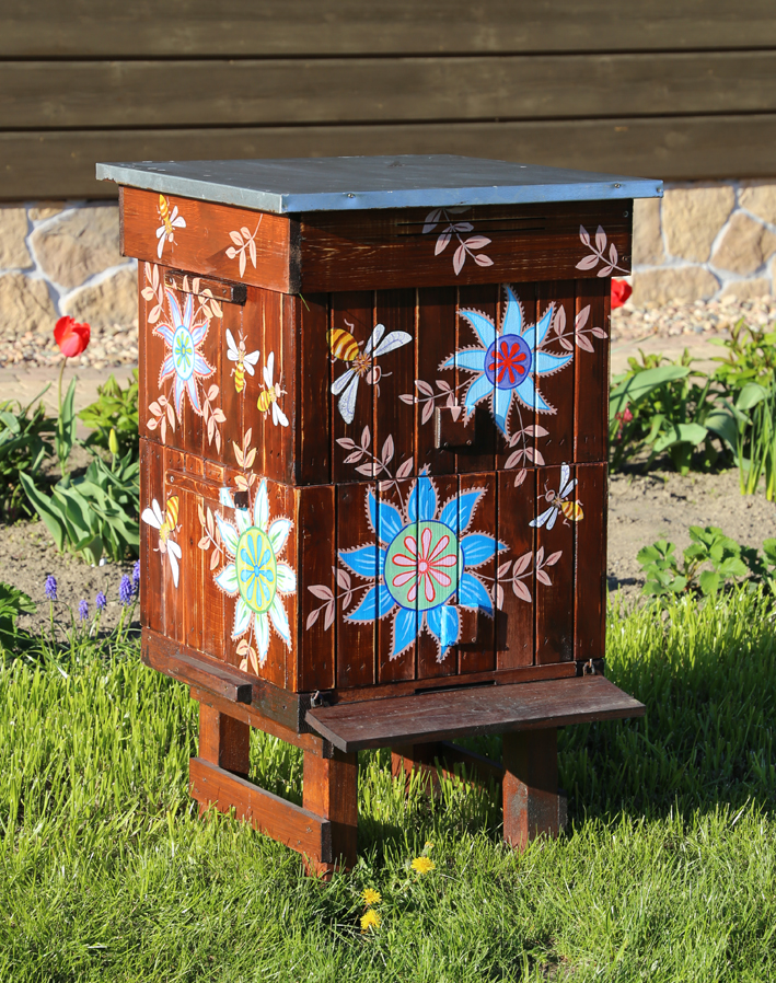 Ręcznie malowany ul typu wielkopolskiego. Nowy. Wykonany jest z dobrej jakości drewna,