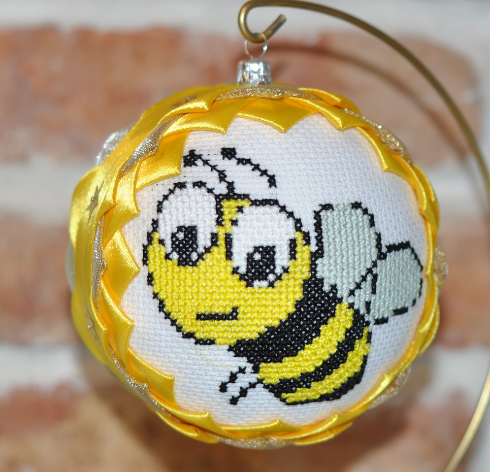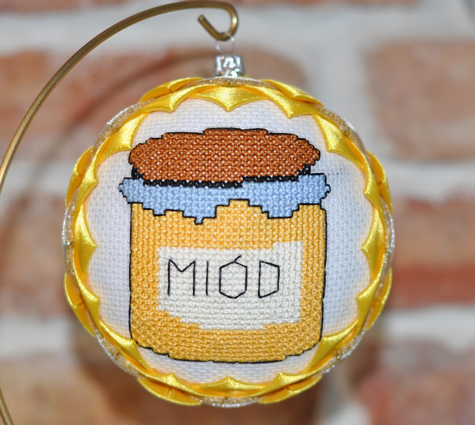 Mam na sprzedaż bombkę recznie wyszywaną z jednej strony z pszczołą a z drugiej z słoikiem miodu w cenie 35zł