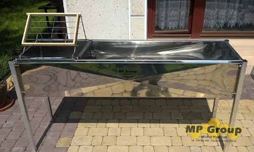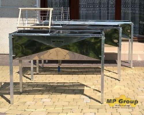 Nowe stoły wykonane z blachy kwasoodpornej 0H18N9 0,8mm- spawane metodą TIG. Stół wielkopolski, posiada kopertowo wyprofilowane dno z calowym kwasoodpornym zaworem kulowym, przetłoczone boki oraz usztywnienie konstrukcji poprzez przynitowane profile pod zagiętymi rantami. W stole znajduje się pojemnik na odsklepiny z wyjmowanym sitem wykonanym z blachy kwasoodpornej perforowanej.