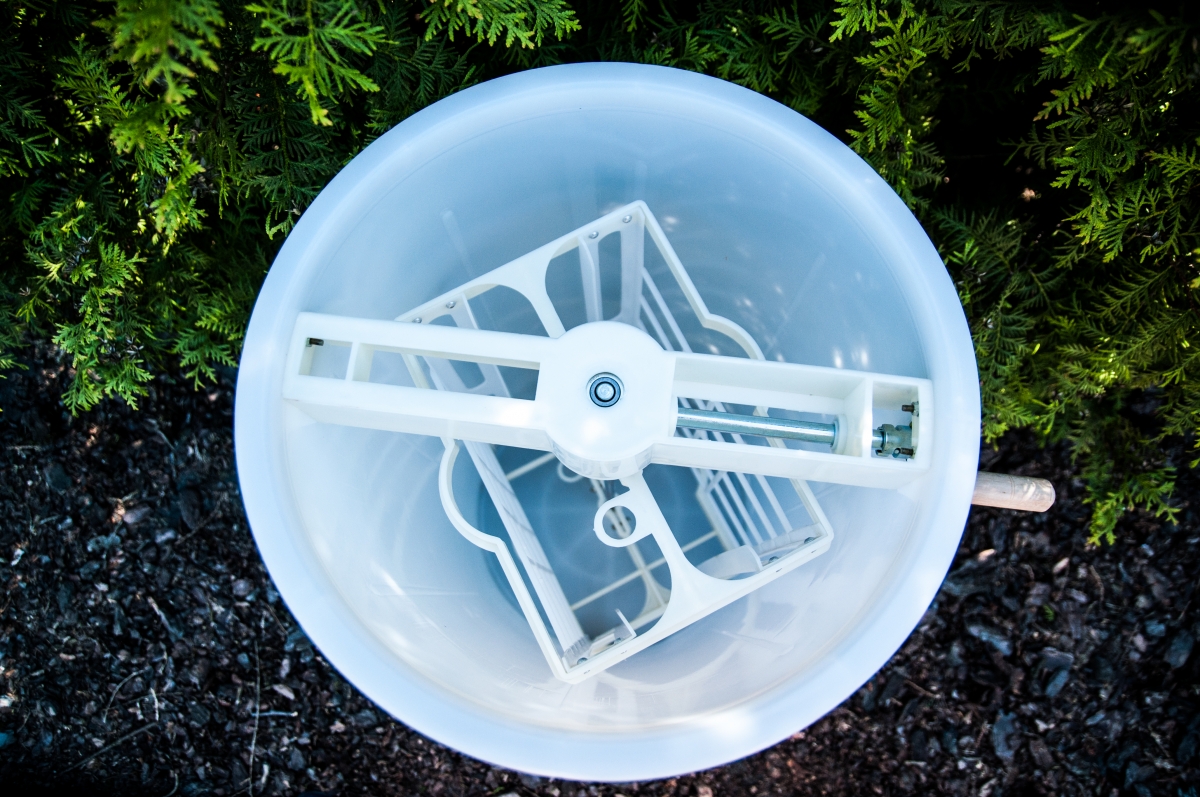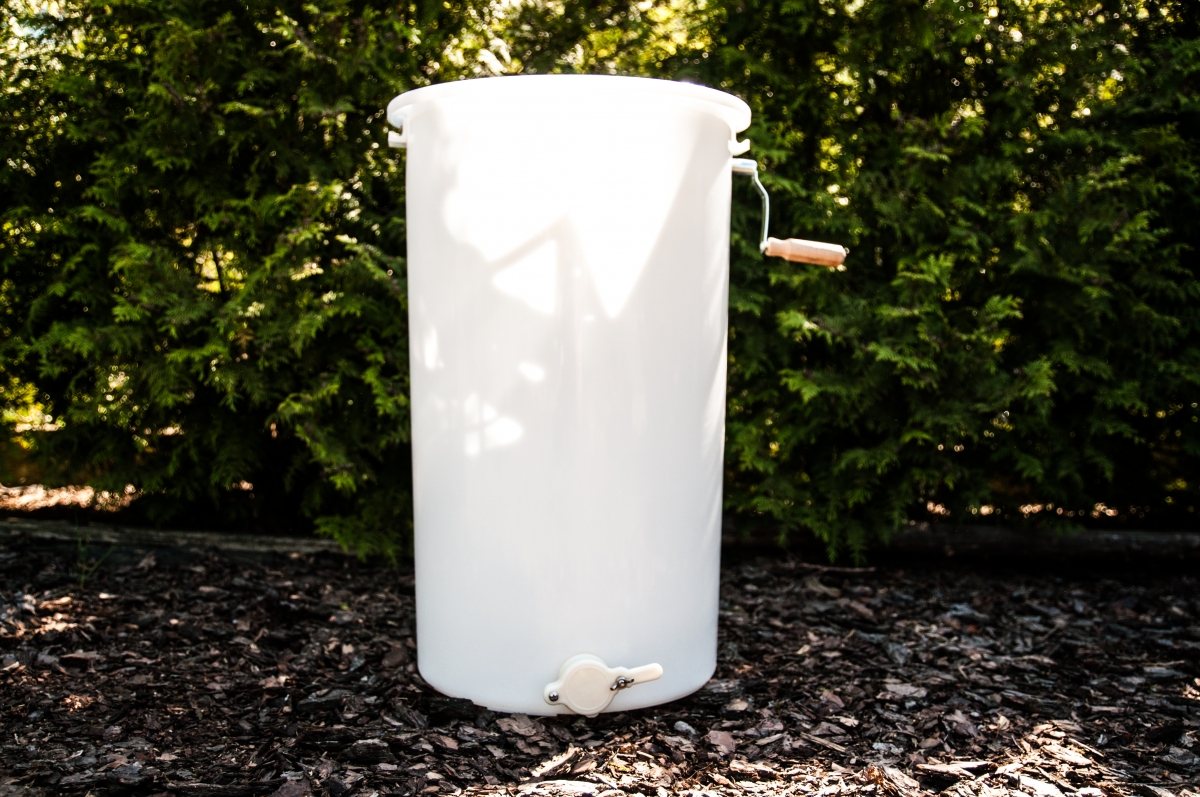 Posiada napęd ręczny, dzięki czemu można wirować miód zarówno w pracowni jak i na pasiece.