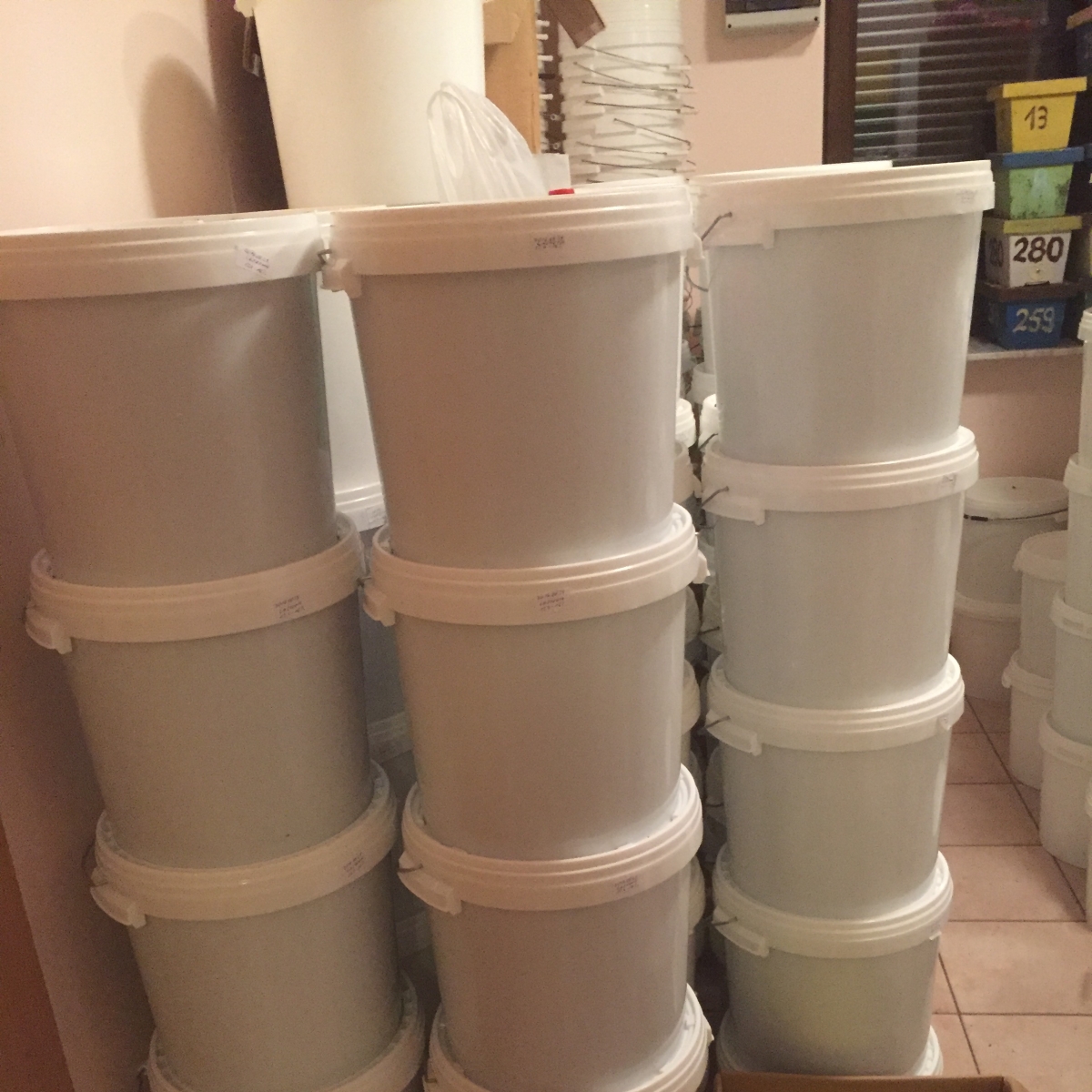 Miód jest skrystalizowany i rozlany do wiader - 28kg. Kaucja za wiadro bądź zakup włącznie +15 zł.