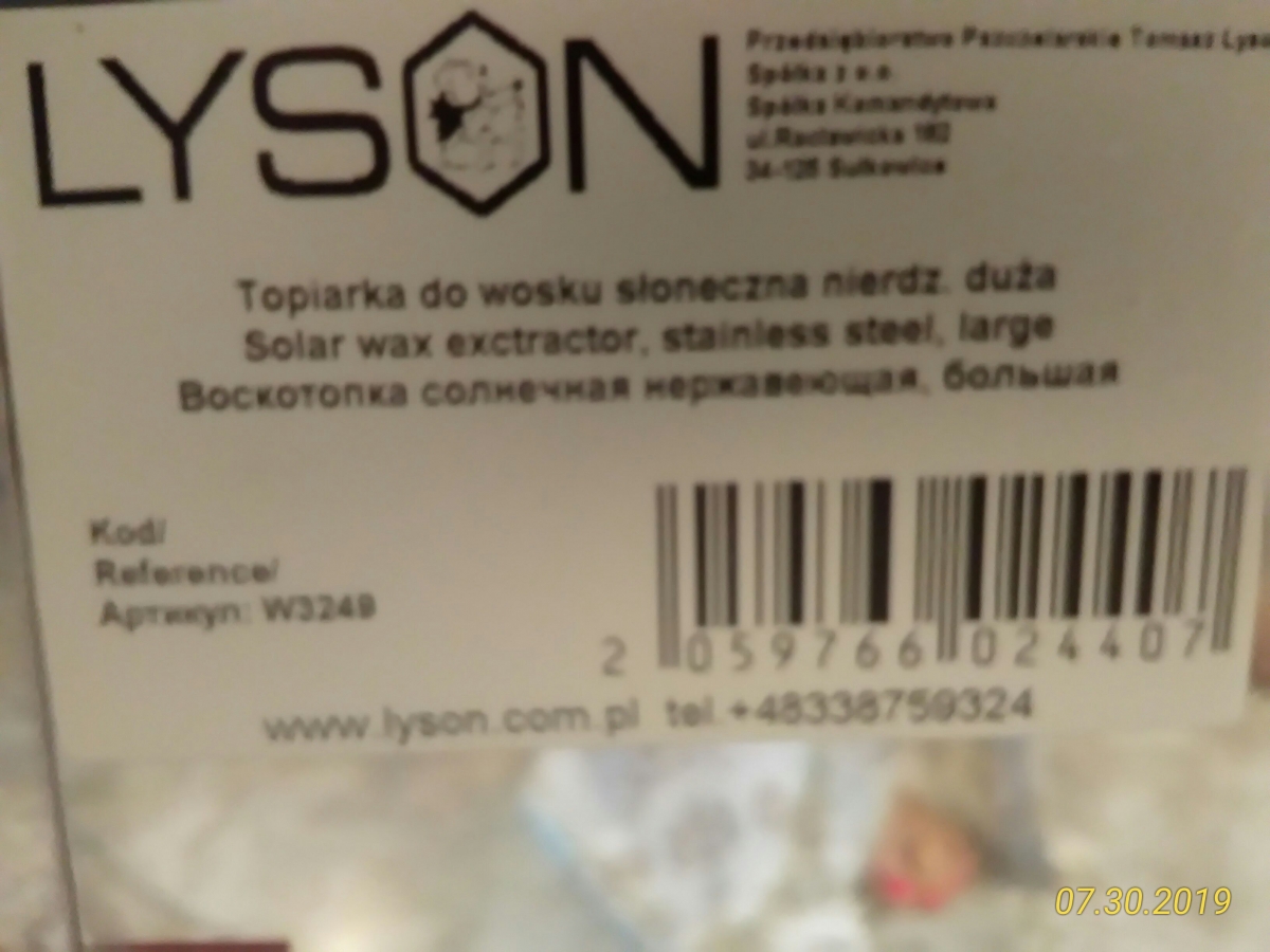 02 Sierpnia 2023 Sprzedam Topiarka słoneczna do wosku Duża Nierdzewna wytapiarka 2 ramkowa