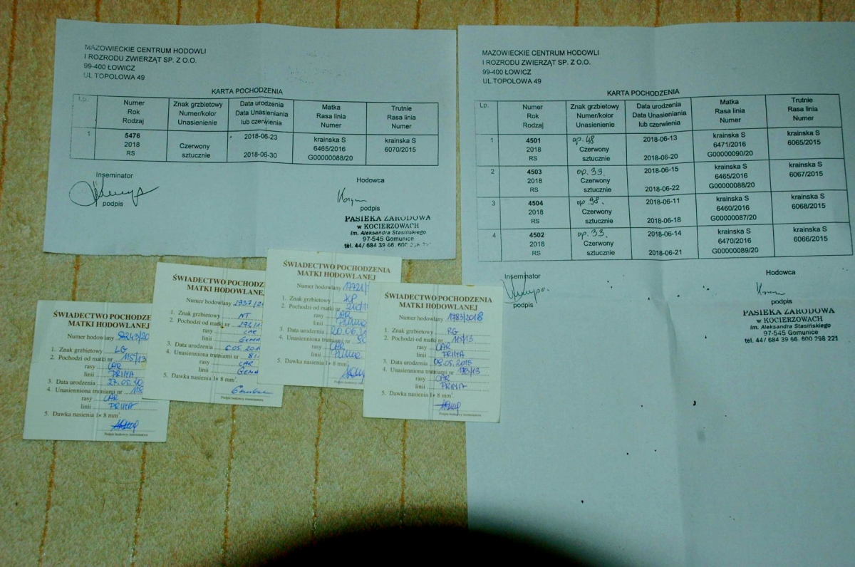 Sprzedam unasiennione matki pszczele ze sprawdzonym czerwieniem, na bieżąco, w ciągłej ofercie po reproduktorkach linii krainka Gema, krainka Prima, krainka S . Matki unasienione naturalnie ze sprawdzonym czerwieniem w cenie 60 zł. Koszt przesyłki 14 zł, wysyłamy w dni robocze od poniedziałku do czwartku. Nasza pasieka od wielu lat specjalizuje się w wychowie matek linii Car Prima i Gema oraz S. Matki po reproduktorkach pochodzących z pasiek Zarodowych w Kocierzowach oraz Mellifera z Siedlec – świadectwa pochodzenia matek reprodukcyjnych. – świadectwa pochodzenia matek reprodukcyjnych. Matki hodowane są w sztucznych miseczkach dzięki czemu przekładane larwy są w odpowiednim wieku, wychów odbywa się w rodzinach wychowujących w obecności matki, do których przekładam ograniczoną ilość mateczników. Po zasklepiniu mateczników są one przekładane do cieplarki. Matki znakowane opalitkami. Transport w plastikowych klateczkach wraz ze świtą pszczół, klateczki w kartonowych pudełkach z odpowiednią wentylacją. Powyżej 10 sztuk przesyłka gratis. Dostępne również matki nieunasienione w cenie 20 zł sztuka. Kontakt tel.781471129 ,