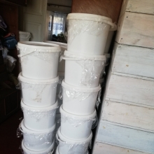 Pakowanie: wiaderka plastikowe spożywcze o pojemności 10 l.. Wiadro o pojemności 10 litrów może pomieścić od 14 do 14,5 kg. Miód.