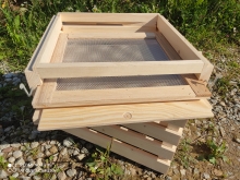 Dennica higieniczna posiada wysuwaną ramę z grubą siatka aluminiową oraz wysuwalna sklejka do kontroli osypu i warrozy zapewnia łatwe bezproblemowe czyszczenie ula. Ponadto wylotek montowany jest na zawiaskach - np można bardzo łatwo zamknąć i przewieść ul na nowe stanowisko