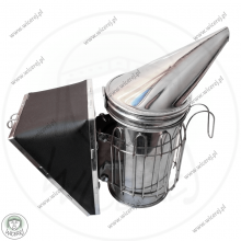 Posiadamy w sprzedaży Nierdzewny Odymiacz, miech, obdymiacz, podkurzacz pszczelarski z kratkowaną chłodnicą – która chroni przed poparzeniem. Podkurzacz wykonany jest ze stali nierdzewnej, natomiast mieszek z Eko-skóry i sklejki. Odymiacz składa się z korpusu, wyjmowanego wkładu, uchwytu do wieszania, Chłodnicy (kratownicy, która chroni przed poparzeniem) oraz wymiennego mieszka z ekoskóry (istnieje możliwość wymiany miecha).