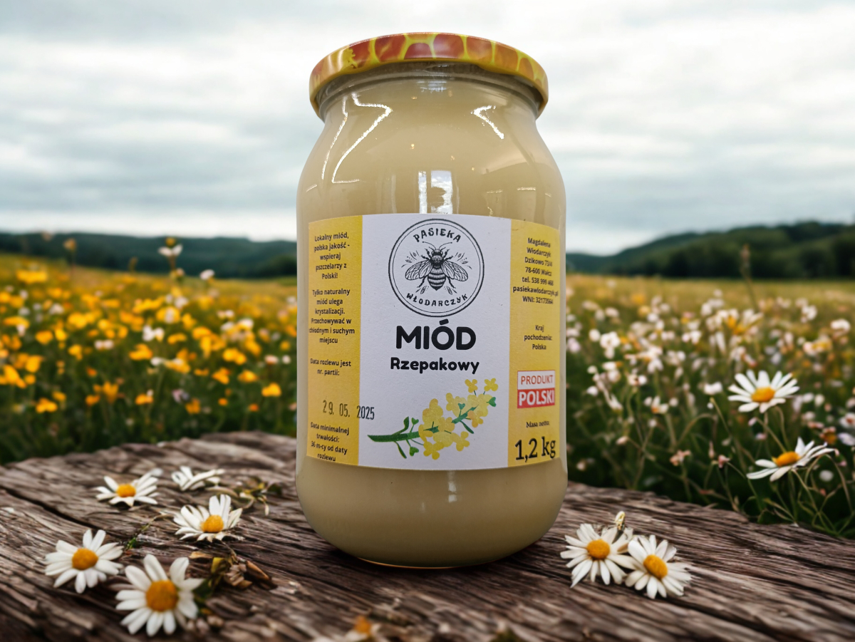 Miód rzepakowy 1,2 kg z Pasieki Włodarczyk z Pojezierza Wałeckiego