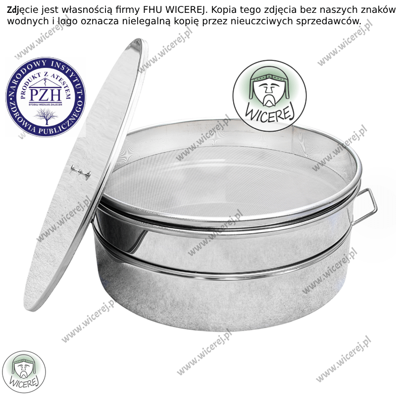 Posiadamy w sprzedaży odstojnik pojemnik do miodu nierdzewny kwasoodporny o pojemności 30 litrów, wyposażony w okrągłe sito i pokrywę. Odstojnik na Miód 30L ze stali nierdzewnej kwasoodpornej AISI 304 wraz z okrągłym, jednoczęściowym sitem do miodu wykonanym ze stali nierdzewnej kwasoodpornej AISI 304.