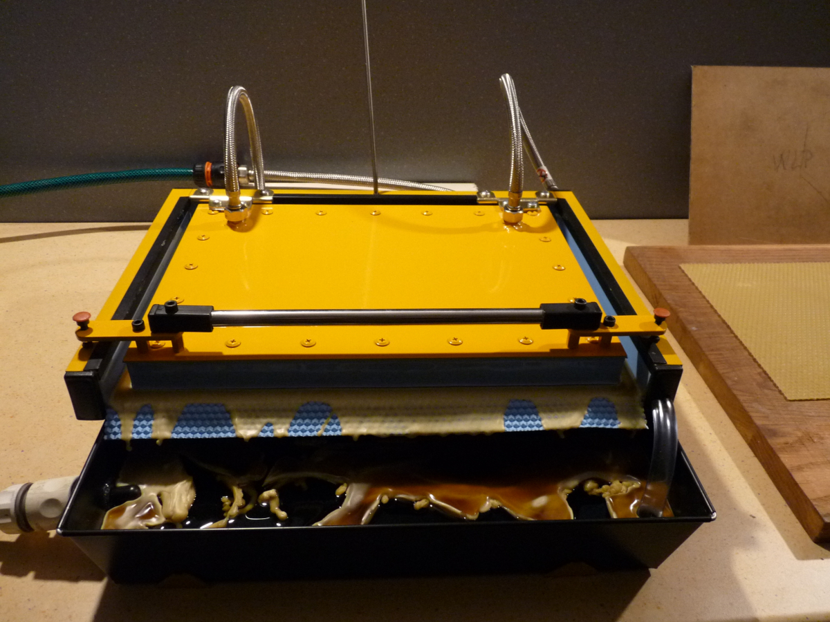 Praska do odlewania węzy wielkopolskiej, chłodzona wodą, regulacja grubości odlewanej węzy, komórka 5,4. Cena-1600 zł. Praktyczne urządzenie do zamkniętego obiegu wosku w pasiece. Na zamówienie praski do dowolnych rodzajów i wymiarów węzy. Tel: 606198758.
